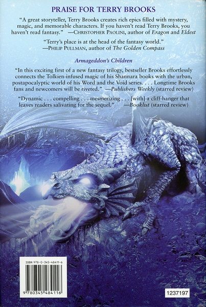 With his groundbreaking New York Times bestseller The Sword of Shannara and its acclaimed sequels, Terry Brooks brought a new audience to epic fantasy. Then he gave the genre a darkly compelling contemporary twist in his trilogy of the Word and the Void. Last year, in Armageddon’s Children, Brooks undertook the stunning chronicle that united two unique worlds. Now that story of clashing forces of darkness and light, of Shannara’s beginnings and the human race’s possible end, marches forward into an unforgettable second volume full of mystery, magic, and momentous events.Across the ruined landscape that is America–hopelessly poisoned, plague-ridden, burned, and besieged by demon armies bent on exterminating all mortal life–two pilgrims have been summoned to serve the embattled cause of good. Logan Tom has journeyed to desolate Seattle to protect a ragged band of street urchins and the being known as “the gypsy morph,” who is both mortal and magical, and destined to save mankind unless he is destroyed. Likewise, Angel Perez has her own quest, one that will take her from the wreckage of Los Angeles to a distant, secret place untouched by the horrors of the nationwide blight–a place where the race of Elves has dwelled since before man existed. But close behind these lone Knights of the Word swarm the ravening forces of the Void.As the menacing thunder of war drums heralds the arrival of the demons and their brutal minions in Seattle, the young survivors who call themselves the Ghosts are forced to brave the dangerous world of gangs, mutants, and worse to escape the invasion. And Logan Tom must infiltrate a refugee compound to rescue Hawk, the leader of the street urchins, who has yet to learn the truth about who and what he is. Meanwhile, Angel Perez has joined an equally urgent mission: to find the Ellcrys, a fabled talisman crucial to protecting the Elven realm against an influx of unspeakable evil from the dread dimension known as the Forbidding. But Angel and her Elf allies must beware–for a demon spy, with a monstrous creature at its command, walks among them.As the legions of darkness draw the noose tighter, and the time of confrontation draws near, those chosen to defend the soul of the world must draw their battle lines and prepare to fight with, and for, their lives. If they fail, humanity falls.