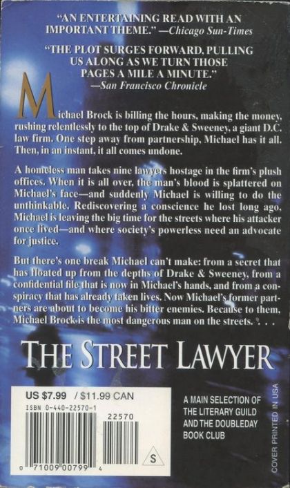 Michael was in a hurry. He was scrambling up the ladder at Drake & Sweeney, a giant D.C. firm with eight hundred lawyers. The money was good and getting better; a partnership was three years away. He was a rising star with no time to waste, no time to stop, no time to toss a few coins into the cups of panhandlers. No time for a conscience. But a violent encounter with a homeless man stopped him cold. Michael survived; his assailant did not. Who was this man? Michael did some digging, and learned that he was a mentally ill veteran who'd been in and out of shelters for many years. Then Michael dug a little deeper, and found a dirty secret, and the secret involved Drake & Sweeney. The fast track derailed; the ladder collapsed. Michael bolted from the firm and took a top-secret file with him. He landed in the streets, an advocate for the homeless, a street lawyer. And a thief.