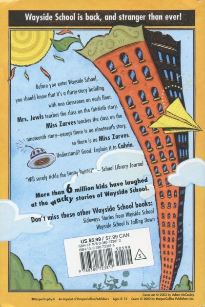 Hooray! Wayside School is Open Again!All the kids from Wayside School had to spend 243 days in horrible schools while Wayside closed to get rid of the cows (Don't ask!). Now the kids are back and the fun begins again on every floor. Miss Much has prepared a Day on the 30th floor--with dogs and cats and frogs and skunks and pigs, and an orange named Fido causing a terrible commotion. In Mrs. Drazil's class, they're throwing a coffeepot, a sack of potatoes, a pencil sharpener, and a light bulb out the window to see which hits the ground first. But the big surprise is that Mrs. Jewls is expecting a baby--but one named Cootie Face or Bucket Head--and a substitute teacher is coming--and everyone knows what that means...Something strange is going on at the already peculiar Way side School, when Mrs. Jewls leaves her students with a succession of substitute teachers. "Wayside School devotes [will] turn pages eagerly...these additional anecdote about wayside school will surely tickle the funny bones of fans"-School Library Journal