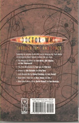 Leah Moore & John Reppion, Tony Lee, John Ostrander, Gary Russell, Rich Johnston, Charlie Kirchoff (w) o Ben Templesmith, Paul Grist, Kelly Yates, Adrian Salmon, Tom Mandrake (a) o Templesmith (c) Collecting six original Doctor Who, all featuring the Tenth Doctor, as portrayed by David Tennant. Includes the one-shots The Whispering Gallery, The Time Machination, Autopia, Cold-Blooded Cold War, Room with a Deja Vu, and Black Death, by a bevy of talented creators, including Ben Templesmith and John Ostrander. TPB o FC o $19.99 o 152 pages o ISBN: 978-1-60010-575-3