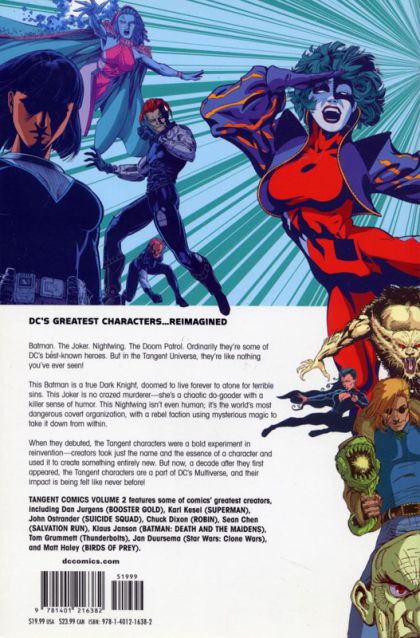 Written by Karl Kesel, John Ostrander, Chuck Dixon and Dan Jurgens Art by Sean Chen, Klaus Janson, Matt Haley and others Cover by Dan Jurgens & Kevin Conrad Collecting more of DC's Tangent titles, presenting a group of strange new heroes with very familiar names! This volume includes TANGENT COMICS: JOKER, NIGHTWING, BATMAN, SECRET SIX and DOOM PATROL.