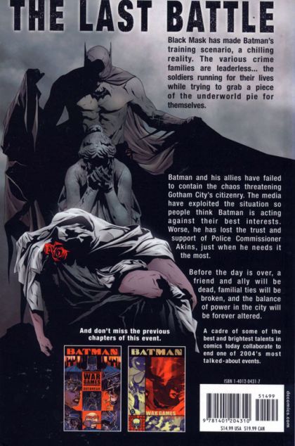 Written by Ed Brubaker, Bill Willingham and others Art by Sean Phillips, Pete Woods and others Cover by James Jean The final volume of WARGAMES collects BATMAN #633, BATGIRL #57, CATWOMAN #36, ROBIN #131, BATMAN: GOTHAM KNIGHTS #58.