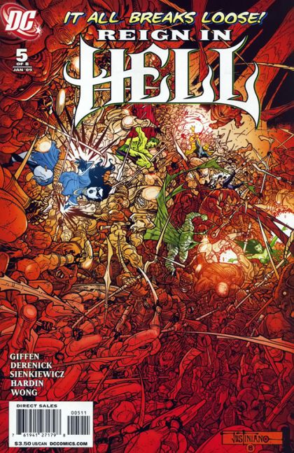 REIGN IN HELL #5 Written by Keith Giffen Art by Tom Derenick & Bill Sienkiewicz and Justiniano & Walden Wong Cover by Justiniano The battle has just begun! The most furious fray ever beheld takes places as heroes from the DC Universe are caught up - and their loyalties are challenged - in a fierce, no-holds-barred struggle for the control of Hell's kingdom. On sale November 26 ? 5 of 8 ? 40 pg, FC, $3.50 US