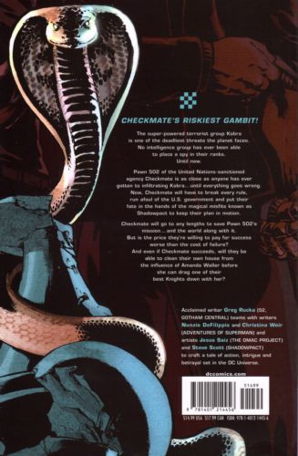 Collecting CHECKMATE #8-12! Action and intrigue abound as Checkmate clashes with a rival agency on American soil and The Black Queen deputizes the big guns in an all-out bid to keep Pawn 502's mission alive! And Fire, the Black King's Knight, tries to break free from Amanda Waller's blackmail in a move that will shake the agency from top to bottom!
