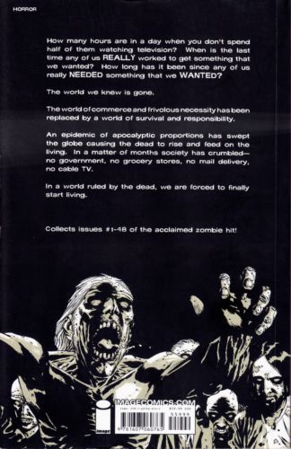 The first eight volumes of this fan-favorite series collected into one massive paperback collection. Get it while supplies last! Collects THE WALKING DEAD #1-48. RETAILER WARNING: MAY NOT BE SUITABLE FOR ALL AGES.