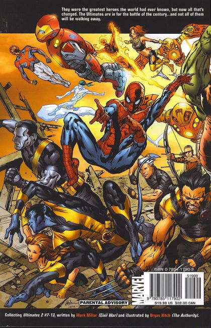 Written by MARK MILLAR Penciled by BRYAN HITCH Cover by BRYAN HITCH Tony and Natasha are on the eve of their wedding - but when Nick Fury makes his move against the mysterious traitor that's been plaguing the team, the Ultimates will never be the same! Also, Captain America and Wasp hit a serious snag in their relationship. Is this the end for the Ultimate Universe's hottest couple? Is this the beginning of the end for the Ultimates? Despite all the globe-girdling surveillance information and awesome firepower of S.H.I.E.L.D. and its super-powered army, the unthinkable has happened! An unknown enemy with unimaginable power and an unstoppable force of will is at our shores. Will hope rise from the ashes of defeat? Collecting ULTIMATES 2 #7-13. 232 PGS./Parental Advisory ?$19.99 ISBN: 0-7851-1790-3