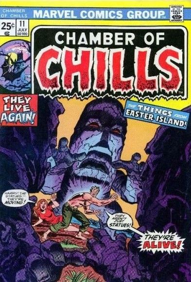 Cover inks by Frank Giacoia. All reprints: The Ghoul! (from Weird Worlds 10), art by Vic Carrabotta; A murderer attempting to hide in a cemetery is picked up by a couple of troopers on suspicion of being a ghoul. Back From the Dead! (from Tales of Suspense 18), script by Larry Lieber and Stan Lee (plot), pencils by Jack Kirby, inks by Dick Ayers; A fugitive hides on Easter Island and finds a scroll that awakens the stone heads. Torture Room (from Adventures in Terror 4), art by Don Rico; The Nazi commander of a concentration camp is captured by the prisoners and placed in their secret torture room. Werewolf! (from Menace 3), script by Stan Lee, art by Bill Everett; A man goes into the forest in order to find proof of werewolves and is attacked; He shoots the beast and returns home to his shrew wife, but he has been bitten, so she screams as he begins to transform.