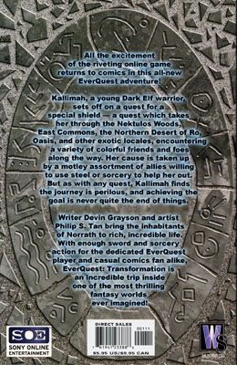 Written by Devin Grayson; ART and cover by Philip S. Tan and Gary Mayoralgo; COVER by Whilce Portacio and Richard Friend In stores June 26. A brand-new story based on Sony Online Entertainment's award-winning EverQuest - the most successful online fantasy role-playing game ever! It's a perilous adventure in which a Dark Elf warrior and an unusual band of misfits must find a lost piece of mystical armor. Can this motley crew survive the dangers of Norrath to claim its prize? Or will they succumb to death's cold embrace? For more information, see the feature article. Prestige Format. FC, 48 pg