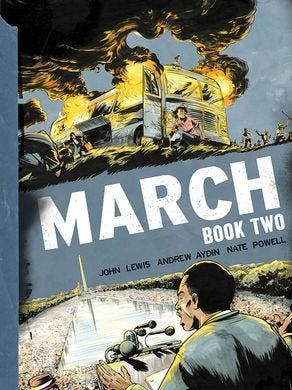 Congressman John Lewis, an American icon and one of the key figures of the civil rights movement, continues his award-winning graphic novel trilogy with co-writer Andrew Aydin and artist Nate Powell, inspired by a 1950s comic book that helped prepare his own generation to join the struggle. Now, March brings the lessons of history to vivid life for a new generation, powerfully and urgently relevant for today's world. After the success of the Nashville sit-in movement, John Lewis' commitment to social change through nonviolence is stronger than ever - but as he and his fellow Freedom Riders board a bus into the vicious heart of the deep south, they will be tested like never before. Faced with beatings, police brutality, imprisonment, arson, and even murder, the movement's young activists place their lives on the line while internal conflicts threaten to tear them apart. But their courage will attract the notice of powerful allies, from Martin Luther King, Jr. to Attorney General Robert F. Kennedy - and once Lewis is elected chairman of the Student Nonviolent Coordinating Committee, he'll find himself helping to lead the greatest demonstration in American history: the 1963 March on Washington for Jobs and Freedom.