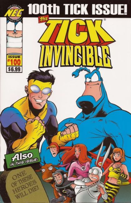 Celebrate the 100th issue of The Tick with a 48-page full-color blockbuster co-starring Robert Kirkman's Invincible! In a full-length 24-page epic, Invincible is transported to The Tick's universe where the two mighty heroes confront the combined threat of the master criminal Chairface Chippendale and a mysterious and menacing new villain who makes even Chairface look like an ordinary umbrella stand! A story so awesome it requires two planets and at least one moon to contain it! Added bonus, 'The Story of The Tick,' a 20-page full-color history of The Tick's illustrious career!