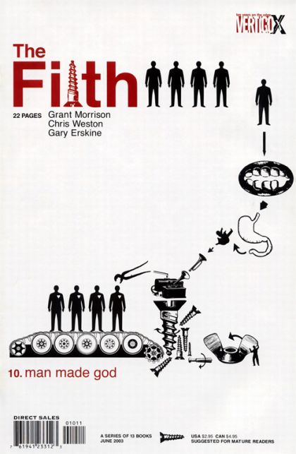 WRITTEN BY GRANT MORRISON; ART BY CHRIS WESTON AND GARY ERSKINE; COVER BY CARLOS SEGURA In stores April 30. Following last issue's revelations, it's time to meet Mother Dirt and learn the secret origins of the Hand organization and of life on Earth itself. What are we? Who are we? And why does it have to be this way? Amnesiac Hand officer Ned Slade recovers more horrors from his memory as the pieces of a vast, terrifying jigsaw fall into place. Learn the Hidden History of Existence in THE FILTH #10: "Man Made God." MATURE READERS FC, 32 PG. (10 OF 13) $2.95 Cover price $2.95.