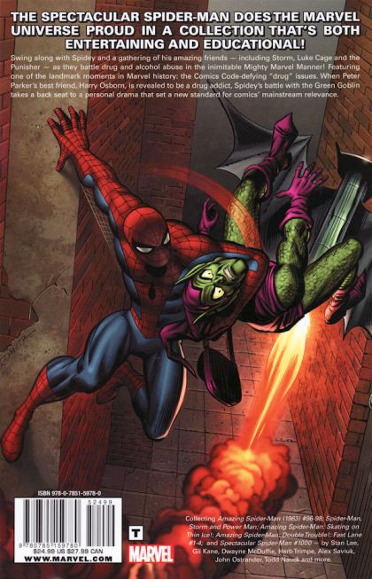 The Spectacular Spider-Man does the Marvel Universe proud in a titanic tome that's both entertaining and educational! Swing along with Spidey and a gathering of his amazing friends - including Storm, Luke Cage, Power Pack, Jubilee and the Fantastic Four - as they take on a host of important social issues in the inimitable Mighty Marvel Manner! Collecting SPIDER-MAN VS. THE PRODIGY; SPIDER-MAN, STORM & POWER MAN; SPIDER-MAN & POWER PACK; SPIDER-MAN AGAINST VERBAL ABUSE; SPIDER-MAN & THE NEW MUTANTS FEATURING SKIDS; ADVENTURES IN READING STARRING SPIDER-MAN; SPIDER-MAN: CHAOS AT THE CONSTRUCTION SITE; SPIDER-MAN: RIOT AT ROBOTWORLD; SPIDER-MAN BATTLES THE MYTH MONSTER; SPIDER-MAN: SKATING ON THIN ICE; SPIDER-MAN: DOUBLE TROUBLE; SPIDER-MAN: HIT & RUN; SPIDER-MAN: CHAOS IN CALGARY; SPIDER-MAN: DEAD BALL; SPIDER-MAN: HOW TO BEAT THE BULLY/JUBILEE: PEER PRESSURE; SPIDER-MAN: FATHERHOOD; FAST LANE #1-4; SPIDER-MAN ON BULLYING PREVENTION; HEROES VS. PLAQUE: WHEN PLAQUE ATTACKS; and SPIDER-MAN: YOU'RE HIRED! 456 PGS./Rated T
