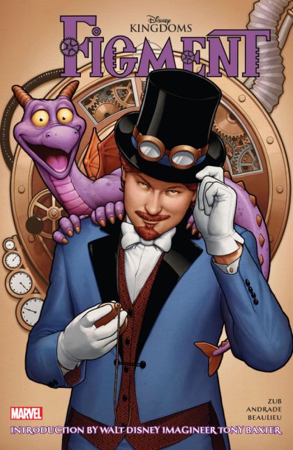 The next great Disney adventure is here - starring one of Disney's most popular characters! Dive into a steampunk fantasy story revealing the origin of the inventor known as Dreamfinder, and learn how one little spark of inspiration created a purple dragon called Figment! Our daring duo explore the realms of imagination, finding friends and foes alike - while back on Earth, a clockwork army assembles under the command of the frightening force known only as the Singular! And when Clockwork Control invades London while the intrepid explorers are trapped within the Nightmare Nation, the only obstacles standing between the Singular and total domination are Dreamfinder, Figment and their newfound friends! Acclaimed and uniquely talented creators Jim Zub (Skullkickers) and Filipe Andrade (CAPTAIN MARVEL) give a Marvel spin to Epcot's mind-bending attraction, Journey into Imagination! Collecting FIGMENT #1-5.