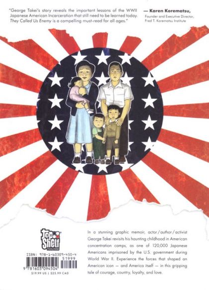 Advance solicited for July release! George Takei has captured hearts and minds worldwide with his captivating stage presence and outspoken commitment to equal rights. But long before he braved new frontiers in Star Trek, he woke up as a four-year-old boy to find his own birth country at war with his father's-and their entire family forced from their home into an uncertain future. In a stunning graphic memoir, Takei revisits his haunting childhood in American concentration camps, as one of over 100,000 Japanese Americans imprisoned by the U.S. government during World War II. Experience the forces that shaped an American icon-and America itself-in this gripping tale of courage, country, loyalty, and love.