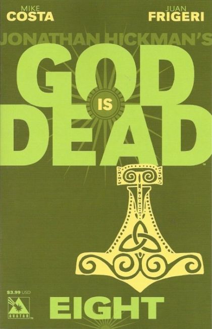 Armageddon is upon us as MIKE COSTA continues the war of the divine with all new bi-weekly issues of God is Dead! The World is at peace with Mother Earth Gaia the sole survivor of the epic war. But a new resistance sets their sites on gods from the hidden pantheons to form a coalition to attack Gaia. But with more gods returning can this be trading one master for many? JONATHAN HICKMAN's unique vision of a world literally facing divine destruction roars on with new ravages from the gods of old. Available with a Regular, End of Days, and Iconic covers by Jacen Burrows, a Carnage Wraparound cover by German Nobile, and a special Gilded Retailer Incentive Cover also by Burrows.