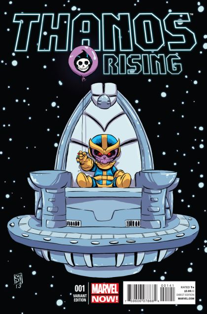 - What comes after 'Marvel NOW!'? Whatever it is, it starts HERE. - The vile face left movie audiences in shock after last summer's Marvel Studios' 'The Avengers' movie, but who is this eerily disturbing villain? - Thanos rises as the unrivaled rogue of wretchedness in this gripping tale of tragedy, deceit and destiny. Where did this demi-god of death and destruction come from and...more importantly what does he want? - The answers come from the incredible creative team of Jason Aaron (Wolverine, X-Men Origins) and Simone Bianchi (Wolverine, Astonishing X-Men) as they take you on journey that will not only change the course of one boy's life... ...but will soon change the very nature of the Marvel Universe.