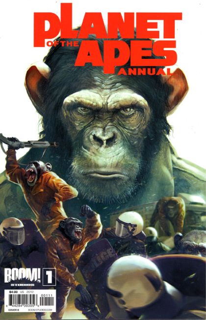 The PLANET OF THE APES ANNUAL leaves no stone unturned! Join superstar writer Jeff Parker (HULK, THUNDERBOLTS), acclaimed writer/artist Gabriel Hardman (HULK, AGENTS OF ATLAS), red hot writer Corinna Bechko (HEATHENTOWN, FEAR ITSELF: THE HOMEFRONT), and Apes mega-scribe Daryl Gregory as they pit man versus ape. And with art from Gabriel Hardman, Carlos Magno (TRANSFORMERS), and John Lucas (UNCANNY X-FORCE), this is a special issue you won't want to miss. Discover the untold stories of the PLANET OF THE APES, with stories spanning from the first human rebellion, to Ape society's glorious renaissance, to a simple story of a boy and his pet human. There's something for every Apes fan in this Annual!