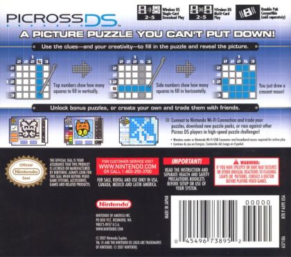 Once the main game is mastered the puzzling action is by no means over. My Picross mode allows players to create their very own puzzles to challenge or share with friends. Using the Nintendo DS stylus and easy-to-use touch-screen, players can design Picross DS puzzles of all sizes. What's more they can even design the image beneath the puzzle which is released upon its completion. Once created these puzzles can be shared with friends using the Nintendo DS wireless connectivity or the Wi-Fi Connection service.