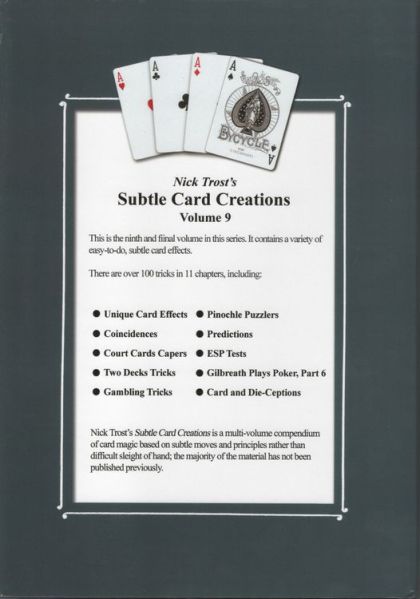Comments: "This is the ninth volume in this series of easy-to-do, subtle card effects from master card creator Nick Trost."