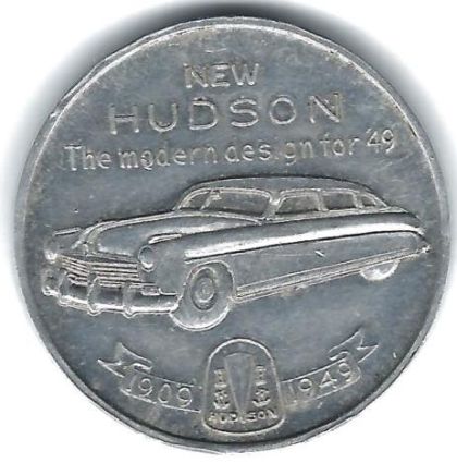 REV: "New / Hudson / The Modern Design for '49 / (a new car) / 1909 - (seal) - 1949"