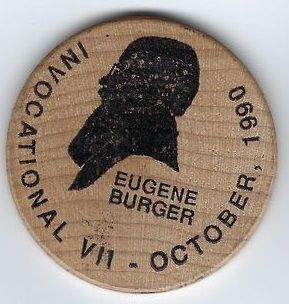 Vintage wooden Nickel - Eugene Burger 1990 Invocational oct 1990 fine condition