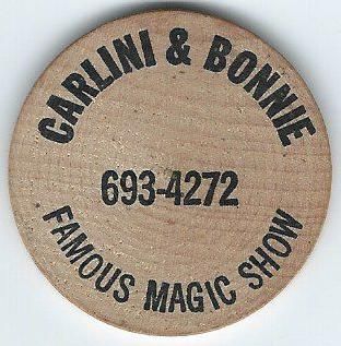 Vintage 80's "Carlini and Bonnie" Magician's WOODEN NICKEL