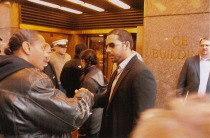 Donald Trump with David Blaine announcing Blaine's next event in the atrium of the Trump Tower.On September 18, 2008, Donald Trump and Blaine held a press conference at the Trump Tower in New York City to announce his latest feat, The Upside Down Man. Blaine was to hang upside down without a safety net for 60 hours above Central Park’s Wollman Rink, with a predicted end for 10:45 p.m. on September 24. Reportedly, Blaine risked blindness and other maladies, in the stunt. Trump has helped finance this and other Blaine events. Blaine hung over the Wollman Rink and interacted with fans by lowering himself upside down. At the press conference Blaine stated he had already gone without food for over a week, and will continue to do so throughout the act. In order to drink fluid and restore circulation he will pull himself up, although he will contend with muscle spasms and lack of sleep. Blaine began the stunt on Monday September 22, but was widely criticized when, only hours into the endurance challenge, he was seen by fans to be standing on a waiting crane platform, and not upside down, as expected. He reportedly would come down once an hour to receive a medical check, stretch and relieve himself.