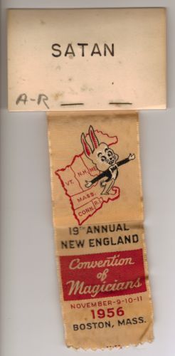 Convention badge from the 19th New England Convention of Magicians, held Nov. 9 - 10 - 11, 1956 in Boston, MA.