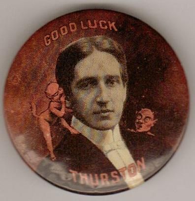 Early Magic Howard Thurston Good Luck devil celluloid button pinback, Weber Backpaper