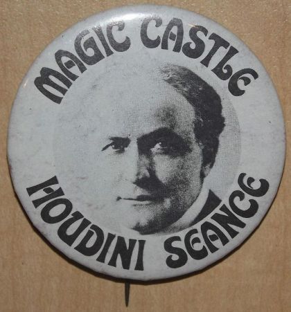 VINTAGE Magic Castle Houdini Seance Pinback Button Photo 2 1/4" The Richmark Co.