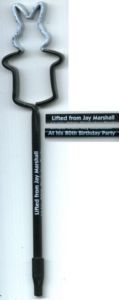 This was a souvenir given out at the 80th Suprise Birthday Party for Magician Jay Marshall. Cap is still on tip, never used. Pen is black with white printed writing: