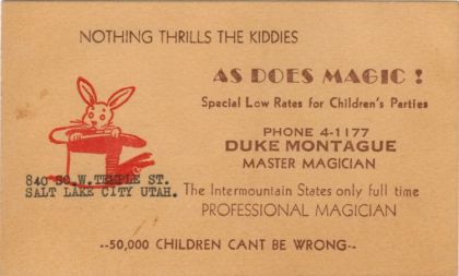 Vintage Personal Business Postcard of Magician Duke Montague. Known as "The Wizard of Ah's".