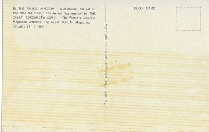 This is a lot of 4 vintage (new, NOS, New Old Stock) post cards featuring The GREAT Socar magician from Calcutta, India. 2 of them are identical. GREAT condition...These have been stored in a picture album for many many years! These thing were sent to Jerry in an envelope of promotional things from Socar back in the 60's.