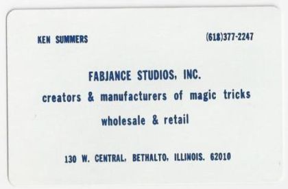 Vintage Throwout card advertisement for Fabjance Magic Studio.