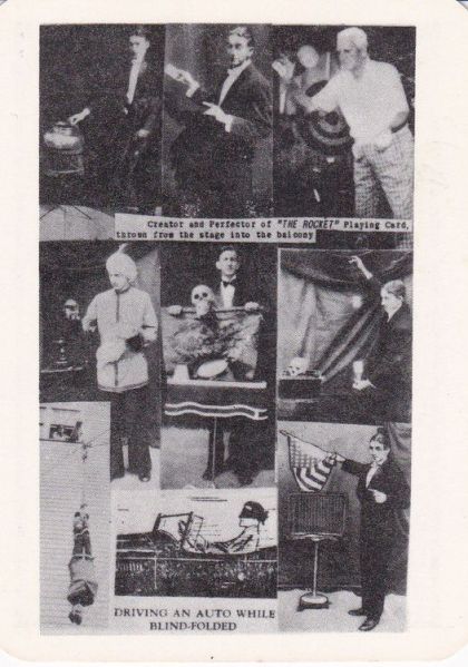 Edwin D. France [1906-1992] was an American magician from the Baltimore area who billed himself as the "Del-Mar-Va Magician" and "France the Magician". He performed some spectacular stunts, such as driving a car blindfolded, as depicted on this card. He also ran a mail-order magic shop, specializing in inexpensive tricks, jokes and novelties. He was an energetic and enthusiastic self-promoter.