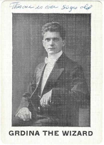 FRONT IMAGE: Photo of a young Grdina, with text below:''GRDINA THE WIZARD"