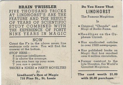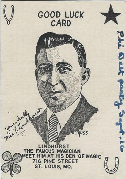 Lindhorst, Magician's Antique advertising Throw Out Card, ca. 1940'S