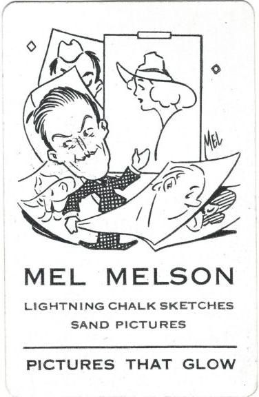 From Magicpedia, courtesy of Genii Magazine: Howard "Mel" Melson (1890-1958) was Abbott's staff artist and ran Tops from 1936 to 1957. He began working for the Abbott Company in 1940 when he left New York to go out to Colon on a six week's assignment to do art work for their catalog. The six weeks turned into eighteen years. His family moved to Buffalo, New York where he attended school, and later the Chown School of Business. An winning a cartoon contest conducted by a breakfast food company, he enrollment in the Buffalo Art Institute and later Cleveland's Landon School of Cartooning. Melson went to work for newspapers and was Art Director for the Magazine of Wall Street. Melson enlisted in the U.S. Army in 1918. First serving at Kelly Field in San Antonio, Texas then touring with the Kelly Field Players as a Chalk Cartoonist and did a sand painting act.