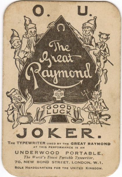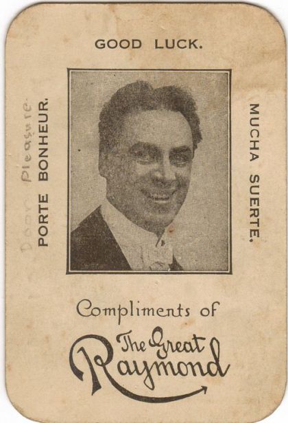 Very Scarce Throw - Out / Scaling Card From The Great Raymond, c.1920's . A little dirty from age but otherwise a nice sturdy card with good rounded corners etc.