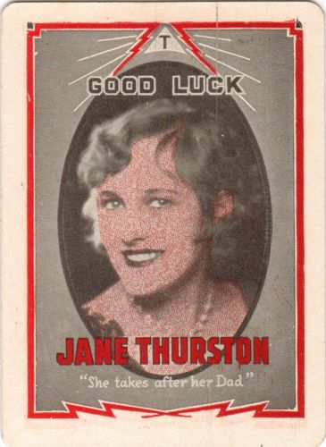 Master Magician Howard Franklin Thurston "The King Of Cards" Advertising Magician Throw Out Card Back Of The Card Shows His Daughter Jane Thurston "She Takes After Her Dad"