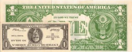 Magician A Blown Up Dollar Bill With a Hoo Did it Houdini Pasted To Back Corner (For Trick) Banknote
