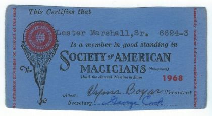 Society of American Magicians ID card for Lester Marshall, Sr.