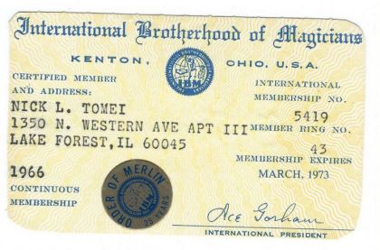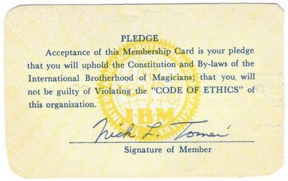 International Brotherhood Of Magicians Membership Card