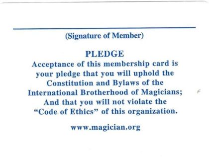 International Brotherhood Of Magicians Membership Card