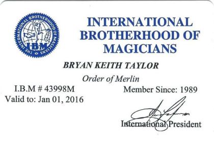 International Brotherhood Of Magicians Membership Card for Bryan-Keith Taylor