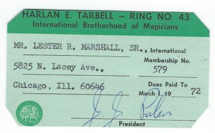 International Brotherhood Of Magicians Membership Card for Lester R. Marshall, Sr.