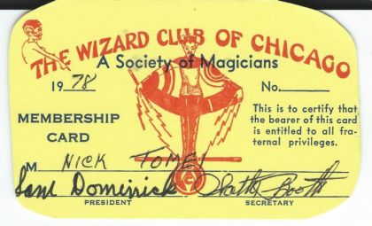 The Wizard Club Of Chicago Membership Card for Nick Tomei