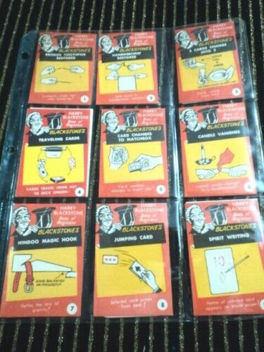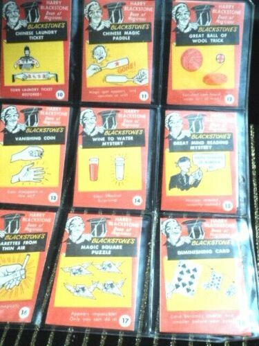Complete collection of 24 Harry Blackstone Sr trading cards each with a different magic trick explained and protected in card sleeves ca 1962. See photos for accurate description.
