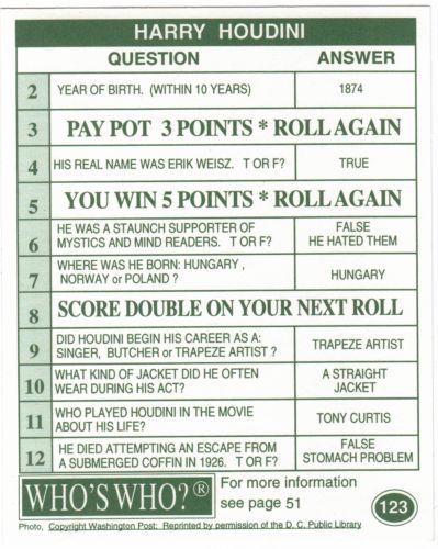 Card is from: 1995 Who's Who Game from Angar International Games, Canada