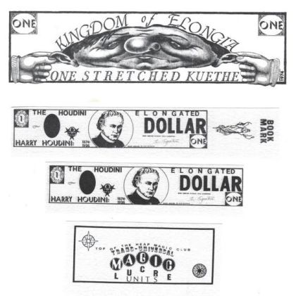 3-Houdini Elongated Dollar, as above, bookmark, 1 3/8 by 7 1/4 inches, blank back.